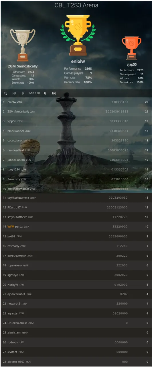 Debuting players in the season: 8 (@alberto0607, @schamangerbert, @tony1294, Drunken-chess, cocacolaron, levitant, perpz, sayhitothecamera).
