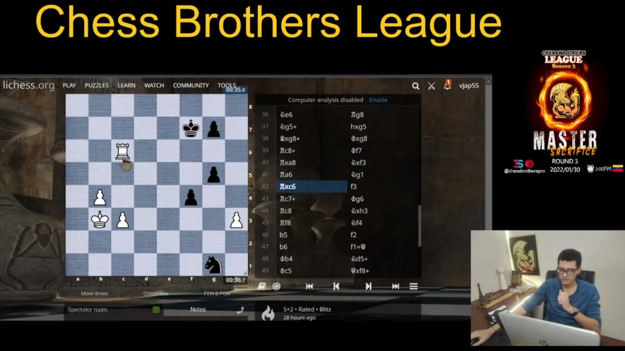La liga de Ajedrez Chess Brothers sigue su curso. La tercera temporada "Master Sacrifice" promete traernos buenas partidas, nuevos estilos de juegos provenientes de nuevos hivers y más contenido ajedrecístico. El día Domingo 23 de enero se celebró la segunda contienda de esta edicion con una excelente calidad en cuanto a los participantes.