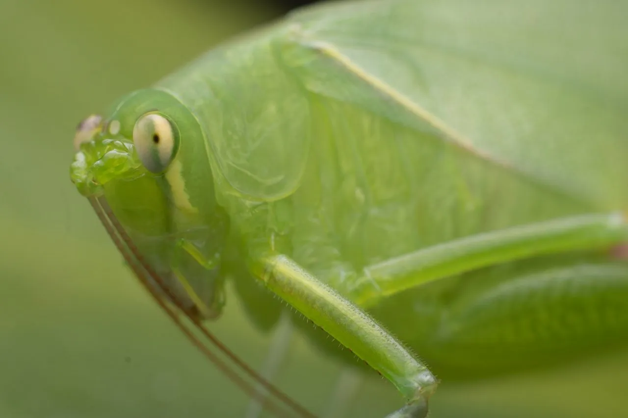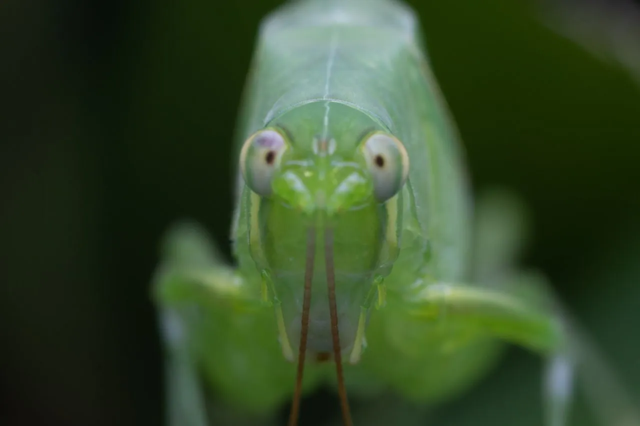 I am not that happy when I manage to get a few shots of this katydid because of several reasons. The size of this katydid is quite big, and with so a big magnification from my macro set up I can really get the whole body of the insect because it already filled my sensor only with its head.