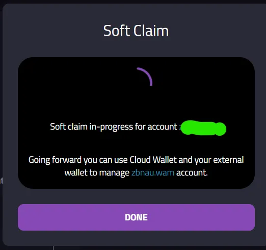 That's it! Your Soft Claim is done, and now you can use your account via the cloud or your external wallet.