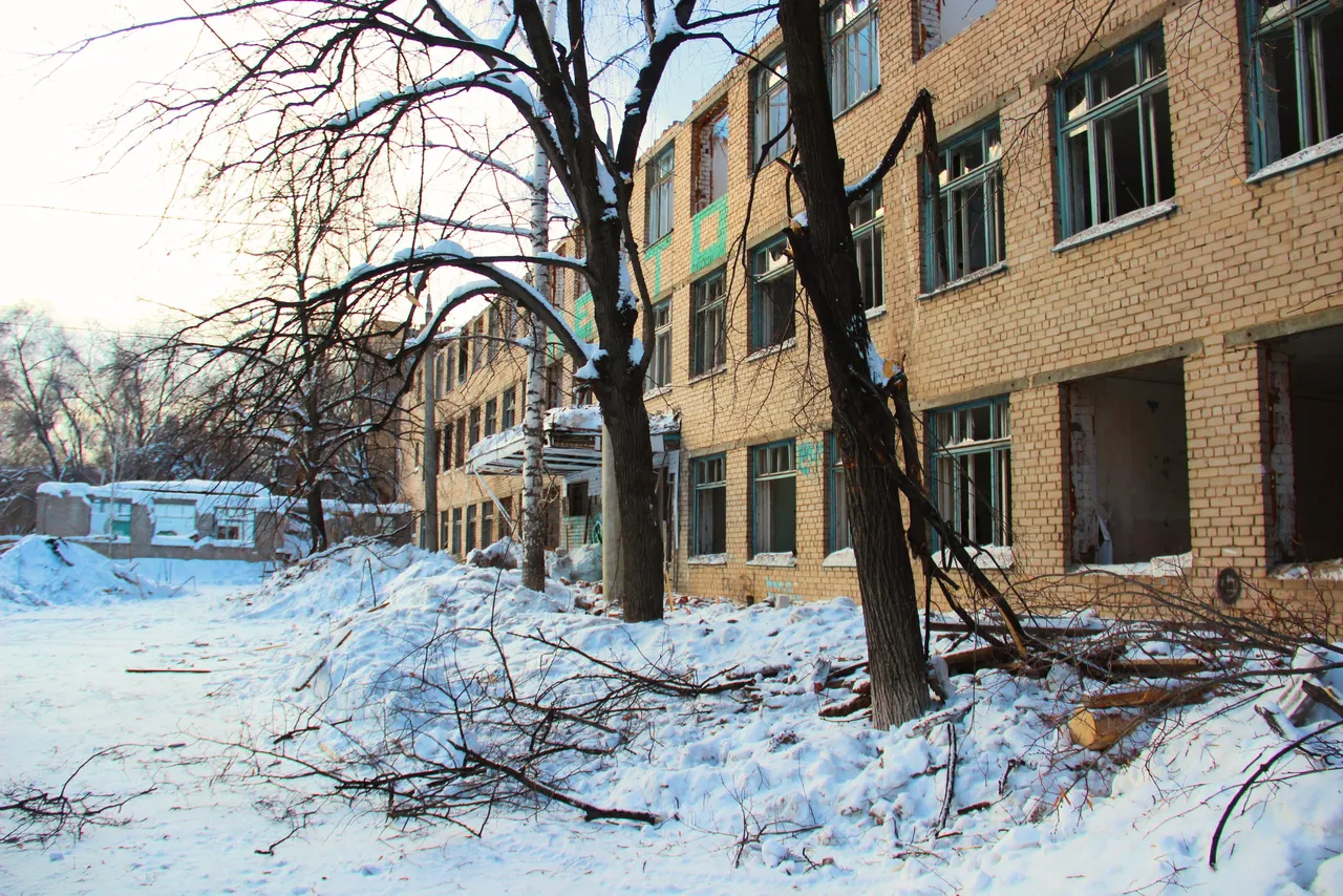 This is how the former boarding school № 4 now looks like. For more than three years, the educational building is empty, homeless people and dogs have become its temporary inhabitants. During this time, it has come into disrepair, there are no batteries, no windows, or even doors. Now he began to gradually demolish. Most likely, a residential complex will be built on the site of the former educational institution.