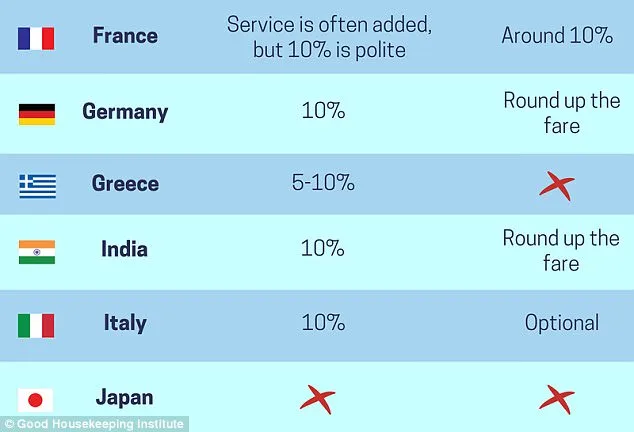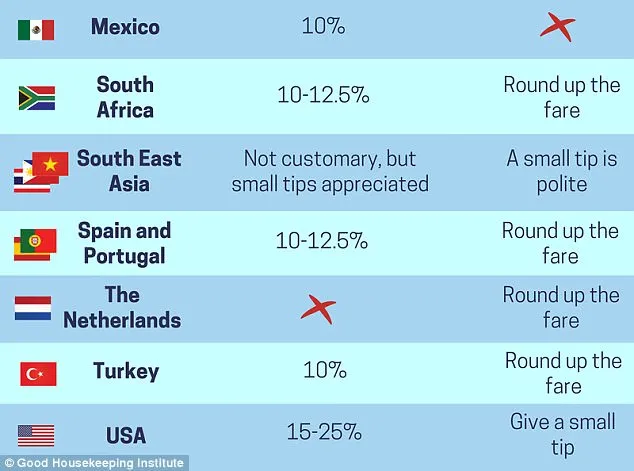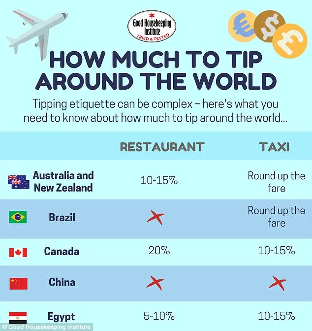 Sara Benwell, Consumer Editor at Good Housekeeping, said: 'In Japan, there is a no-tipping culture, and you may offend your waiter if you try to give him some money, while in America, tips are very much expected, and it's rude if you don't leave anything.