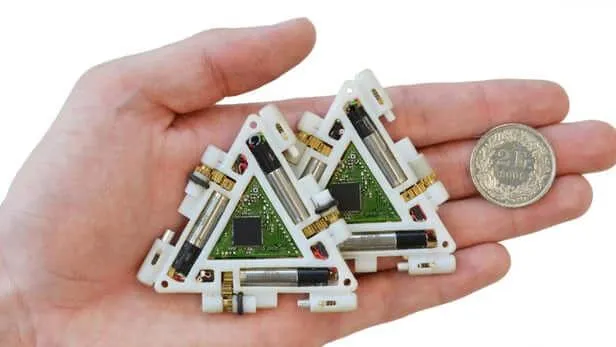 Ukurannya mungil, berbentuk segitiga dengan ketebalan hanya 6 milimeter, lebar 70 milimeter serta bobot tidak lebih dari 26 gram. Robot ini dilengkapi dengan aktuator berukuran mini, sensor, serta kontroler onboard. Untuk sumber tenaganya, harus memperoleh asupan dari luar.