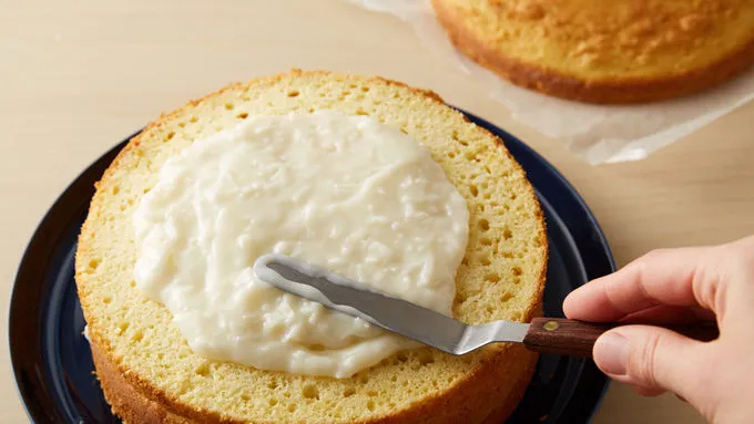 5 Cut each cake horizontally to make 2 layers. Spread one-third (about 2/3 cup) of the coconut-sour cream mixture without whipped topping on cut side of 1 layer. Repeat layers twice. Top with remaining layer, cut side down.