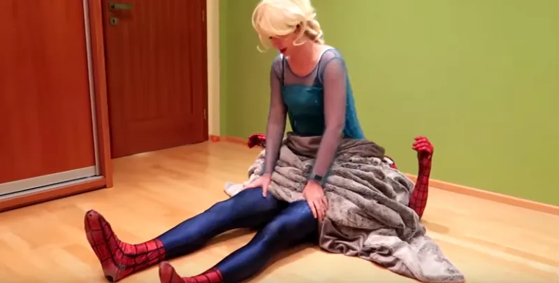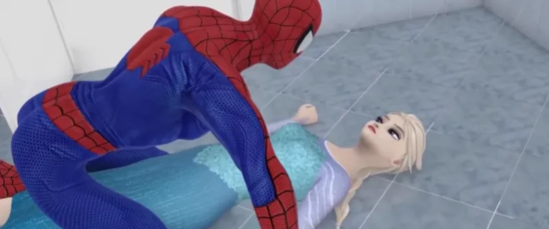 Here’s Elsa from the movie “Frozen” showing her having sex with Spider-Man.