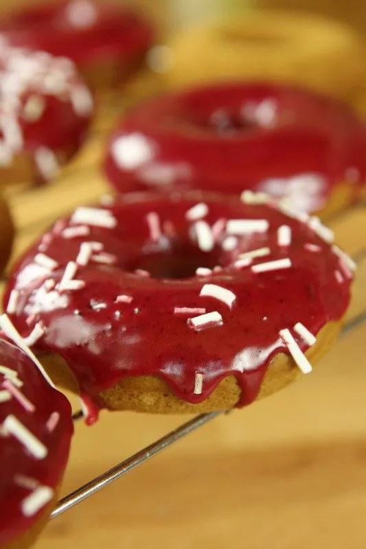 Homemade Vegan Doughnuts are my favorite. This homemade treat will make your next breakfast or brunch or even for dessert so much better. This is a great base recipe for any of your favorite flavors of baked doughnuts. I also used a natural food coloring of beet powder to make this lovely maroon color.