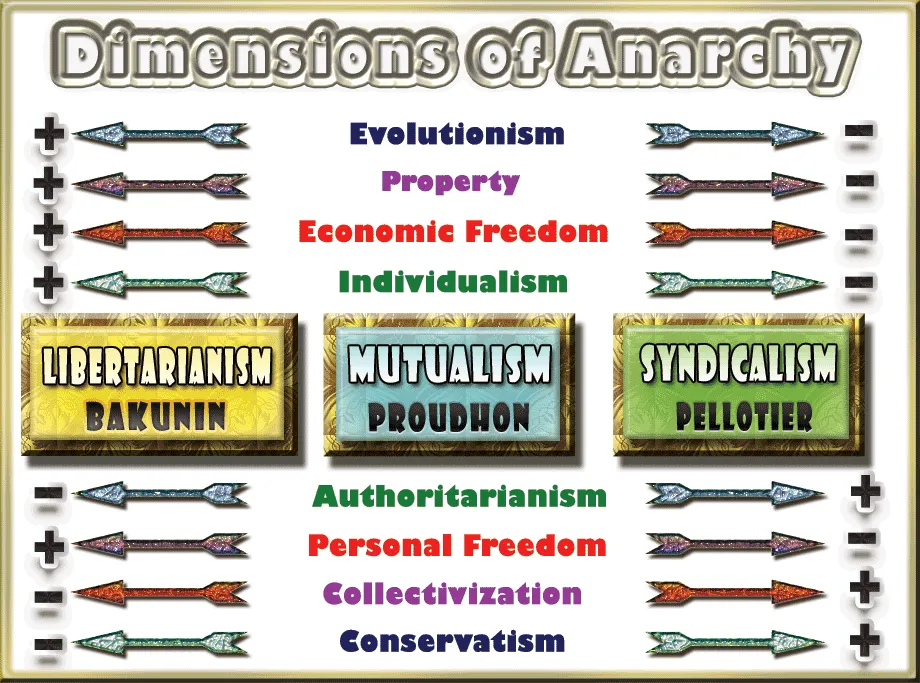 A maioria dos Anarco-Sindicalistas eram discípulos das idéias de Proudhon, de uma organização de federações autónomas como o "Atelier" que substituiria o governo.