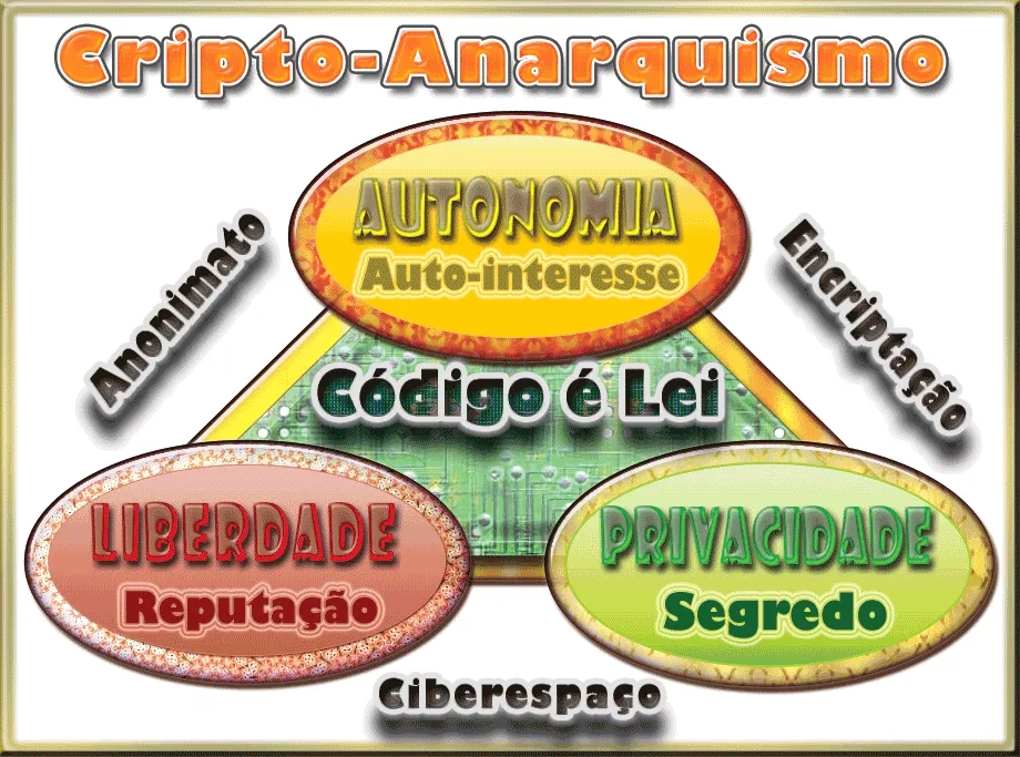 "A Cripto- Anarquia é a realização ciberespacial do anarco-capitalismo, transcendendo as fronteiras nacionais e libertando os indivíduos para fazer os arranjos económicos que eles desejam fazer consensualmente". - Timothy C. May em Crypto Anarchy e Virtual Communities.