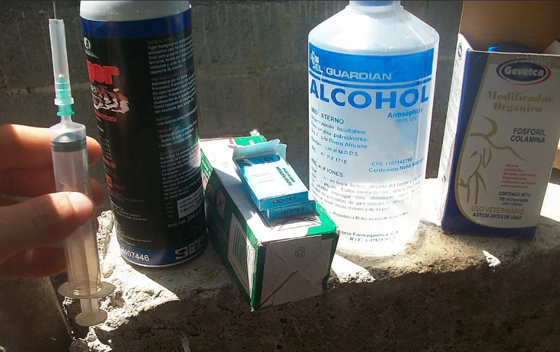 Es muy básico y sencillo, solo se requieren pocas herramientas, en este caso hojillas nuevas, pues se va a afectar un área delicada, algodón o gasa (preferible esta última), inyectadora y los siguientes medicamentos: iodo y/o antiséptico, vitaminas y aminoácidos. Luego se procede de la siguiente manera: