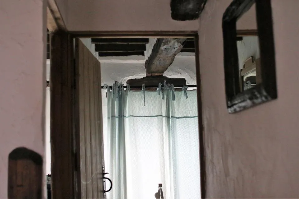 There was not a straight or horizontal line anywhere in the house. The rooms were odd shapes like the kitchen was triangular. And the masses of low wooden beams holding the place together made for some interesting photos. It has what realtors or estate agents would call ‘rustic charm’.