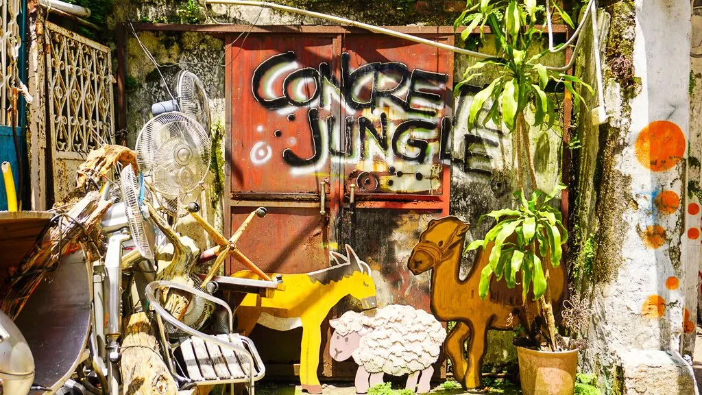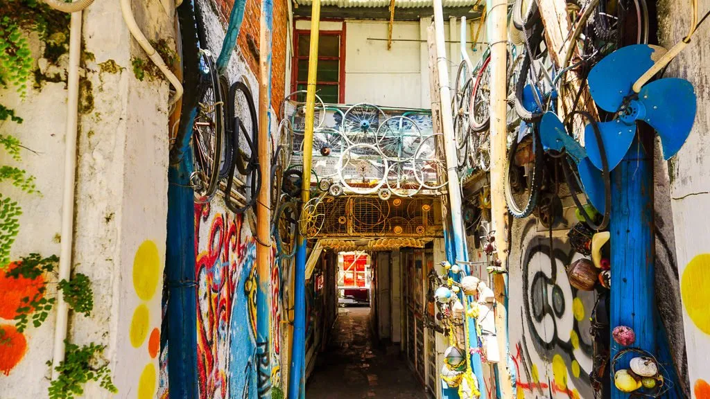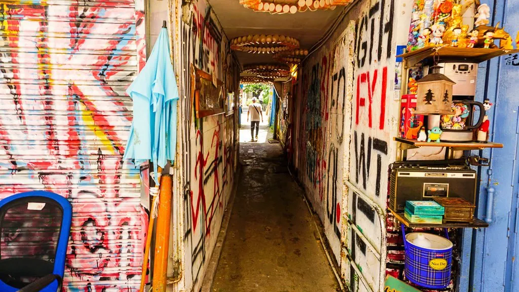 The entrance of My Secret Garden is so secret, hiding in a small street. You can easier miss it. Through the corridor, we can already see graffiti and art works.