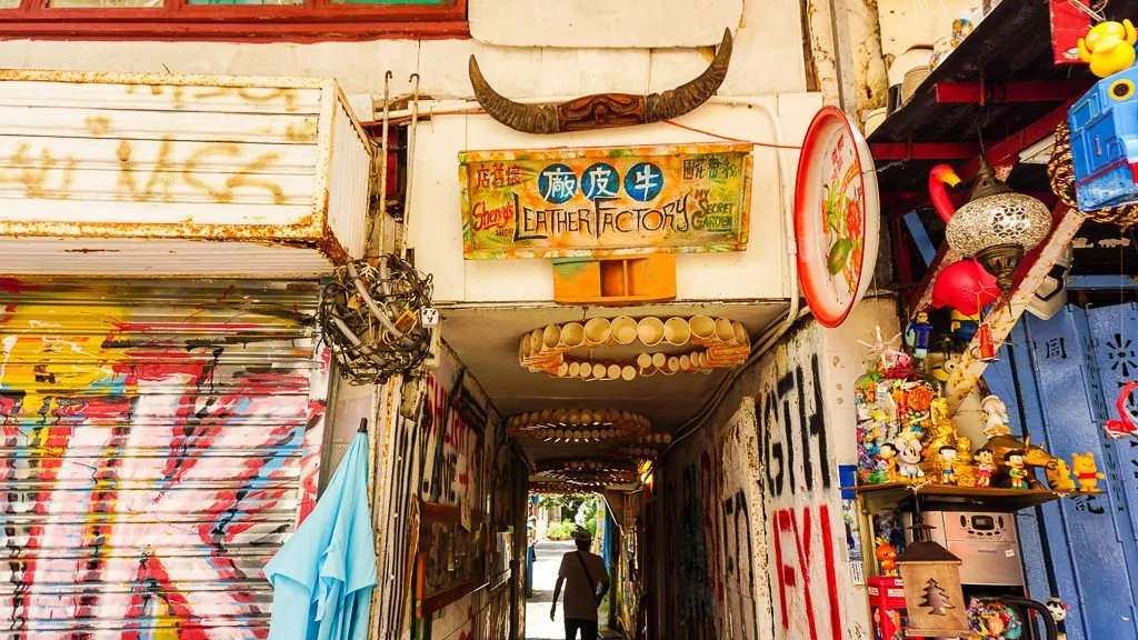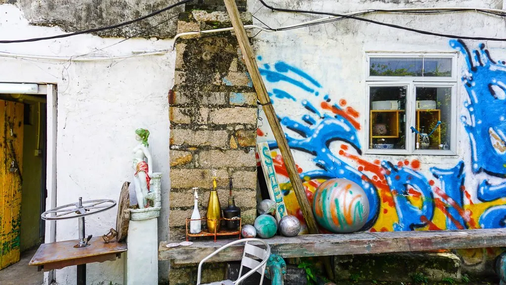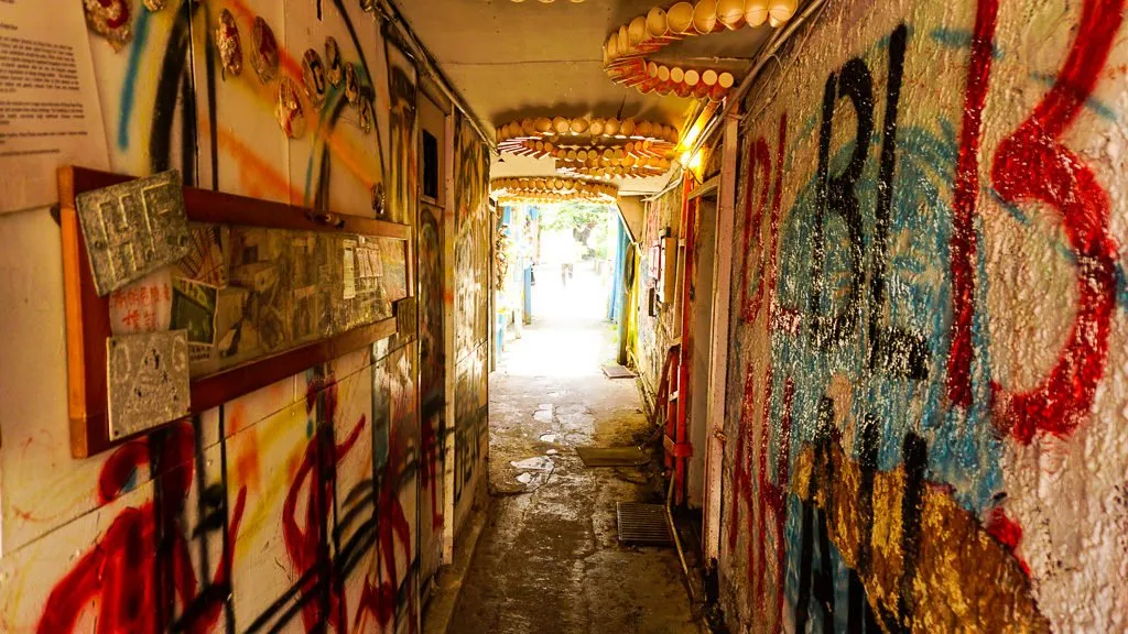 坪洲秘密花園的入口隱身在小街裡,如果你不留意,真的很容易錯過這個入口!走過入口經過一條殘舊的走廊,已見到滿牆的塗鴉和藝術品。