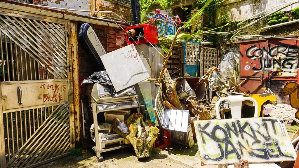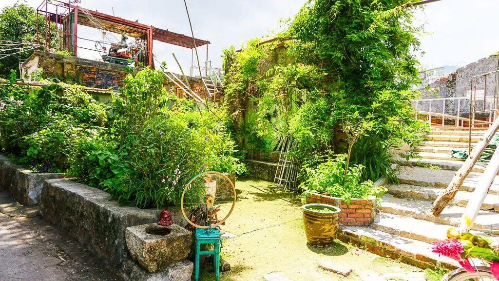 My Secret Garden is a leather factory, a Grade 3 historical building, an Airbnb, as well a garbage dump. Let me tell you the story. Around 40-50 years ago, Peng Chau was famous of industry and there were many factories on the island. Since the economic transformation of HK, factories were shut down, including this leather factory. The factory was left empty for decades and became a Grade 3 historical building.