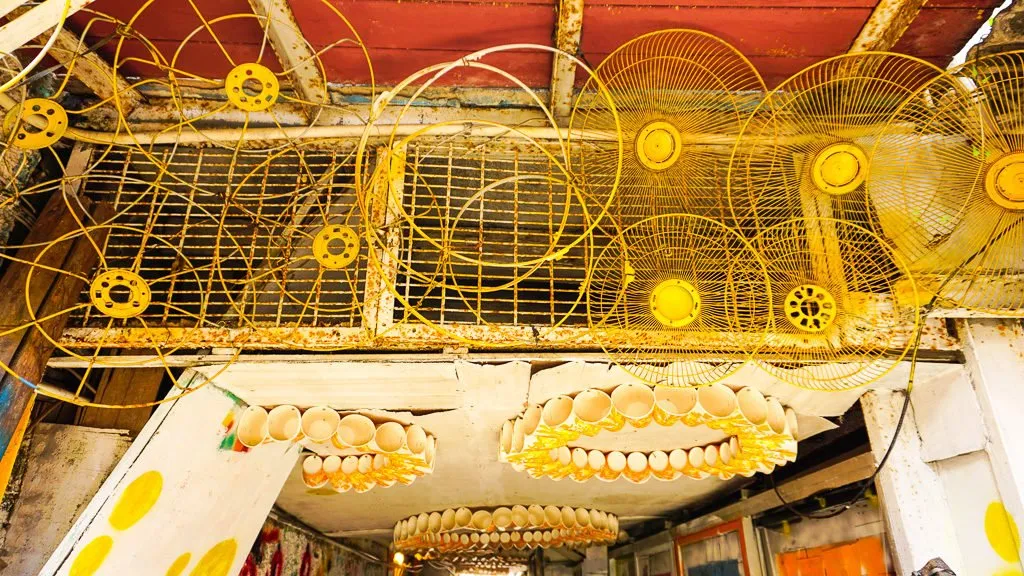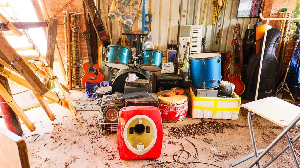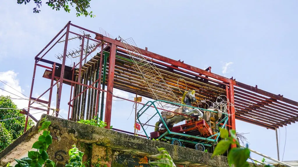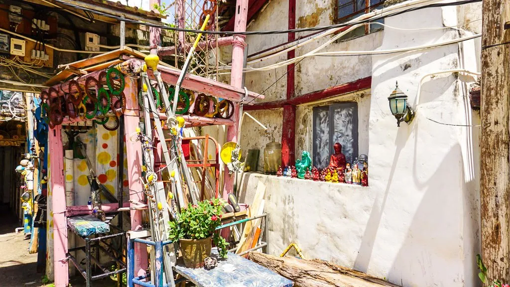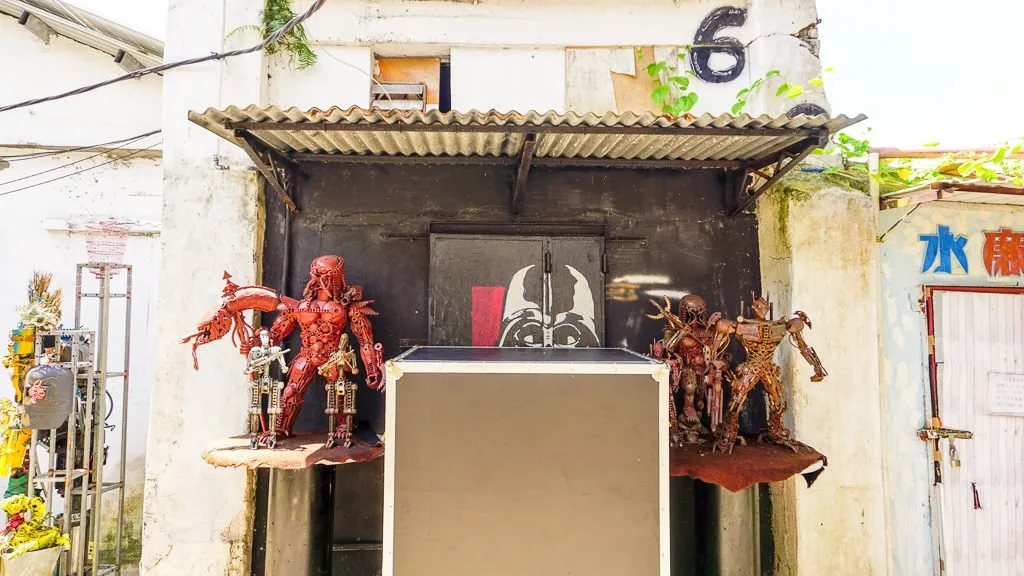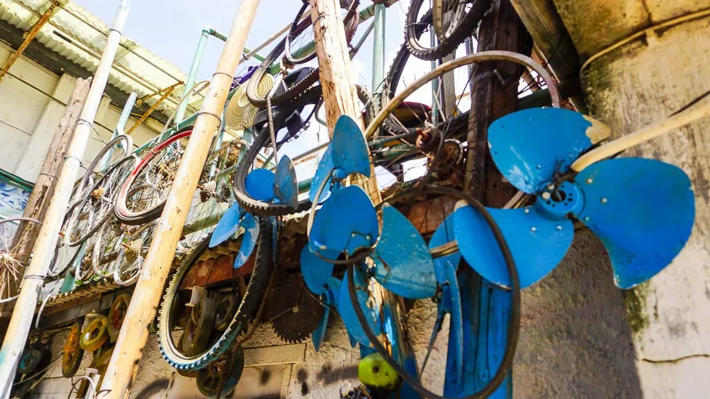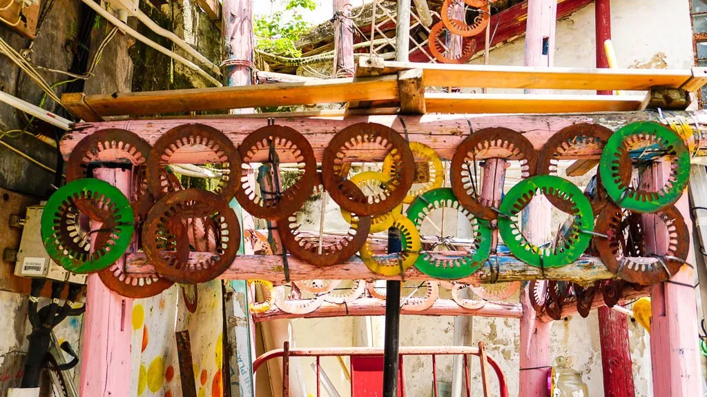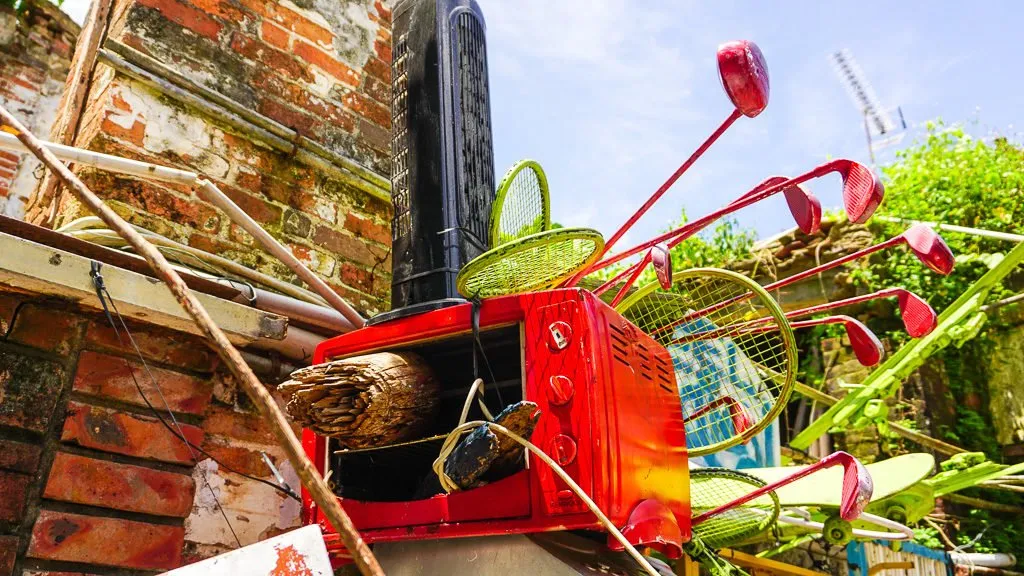 穿過走廊,滿眼都是不同的藝術裝置,這些藝術裝置的組成,都是由場主收集島民的廢物而成,經過場主的佈置,形成藝術的氛圍。據說場主約每個月都會重新佈置,保持這地方的新鮮感。