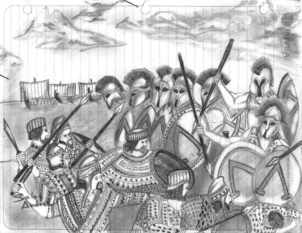 La batalla entre 300 Espartanos y Miles de Persas se efectuó en ciudades griegas, luchaban mucho entre si, pero en 480 a C. Se unieron contra la invasión del emperador persa jerjes I. Un Ejercito de 300 hoplitas (infantería de armada) de Esparta detuvo a miles de persas los aniquilaron, su acción permitió que la flota griega se reuniera en el estrecho de salamina y venciera a los invasores.