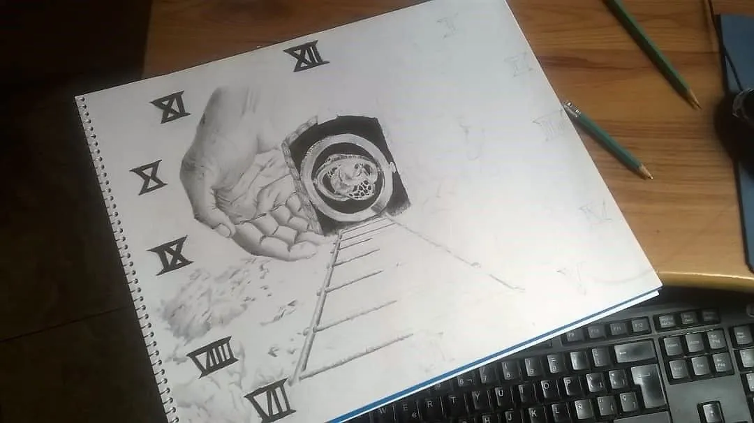 Después de casi una semana sin publicar nada a la comunidad hispana, hoy os presento mi vigésimo noveno y último dibujo. Tenía varias ideas en la cabeza para un dibujo sobre el tiempo e indeciso al final acabé mezclando algunas. Me gustó mucho el resultado.