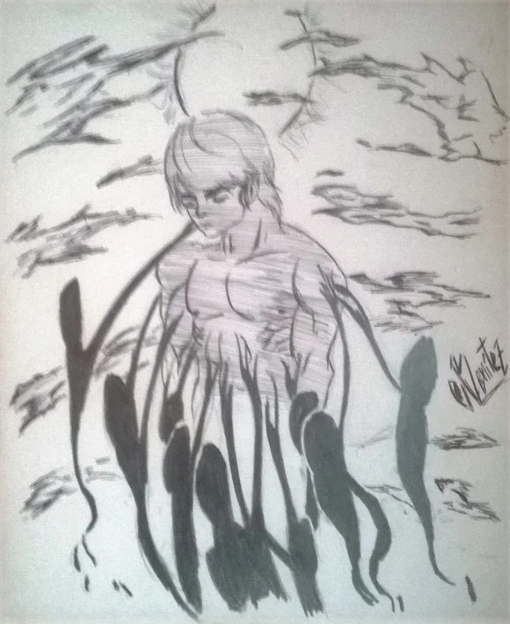 Somos los fantasmas en nuestra cabeza, todos ellos, eso pensé cuando lo dibujaba. Creo que todos tenemos un poco de esa maraña en nuestra cabeza, creo que todos tenemos más de una versión de nosotros. Bueno, sin más que decir me despido, espero os haya gustado mi post y puedan apoyarme con un comentario, sugerencia, resteem o su valioso voto; lo apreciaría mucho.