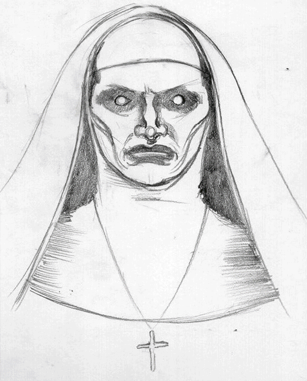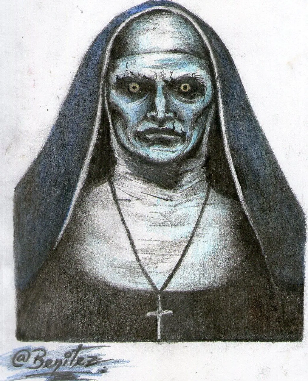 Hoy os traigo algo un poco tétrico visto en El Conjuro 2, tercera entrega de la serie de películas El Conjuro. En una escena de la película, vi a un actor dibujar a "La Monja", y bueno, quise intentarlo también.