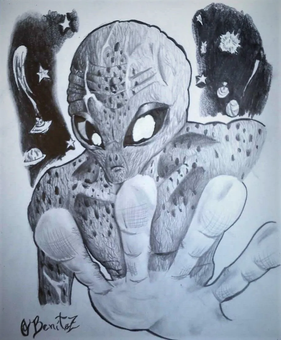 Sí, hoy se me dio por dibujar un alienígena; pero ¿realmente lucen así?, hasta ahora no sabemos nada al respecto y sólo son ideas sacadas de películas. Espero os haya gustado este dibujo y puedan apoyarme con un comentario, sugerencia, resteem o su valioso voto; me ayudaría un montón.