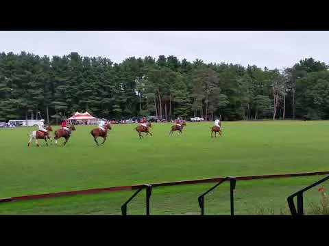 There can be between 4 to 6 periods, or 'chukkas' to a game. Each of these last 7 minutes. At Myopia they take 6 total with a half-time. This is when you traditionally take to the field and 'stomp the divets', that is to stay you go out and turn over the bits of sod flipped up by the speed and pounding of the horses hooves. It's a great tradition and one that truly helps the field stay in shape.