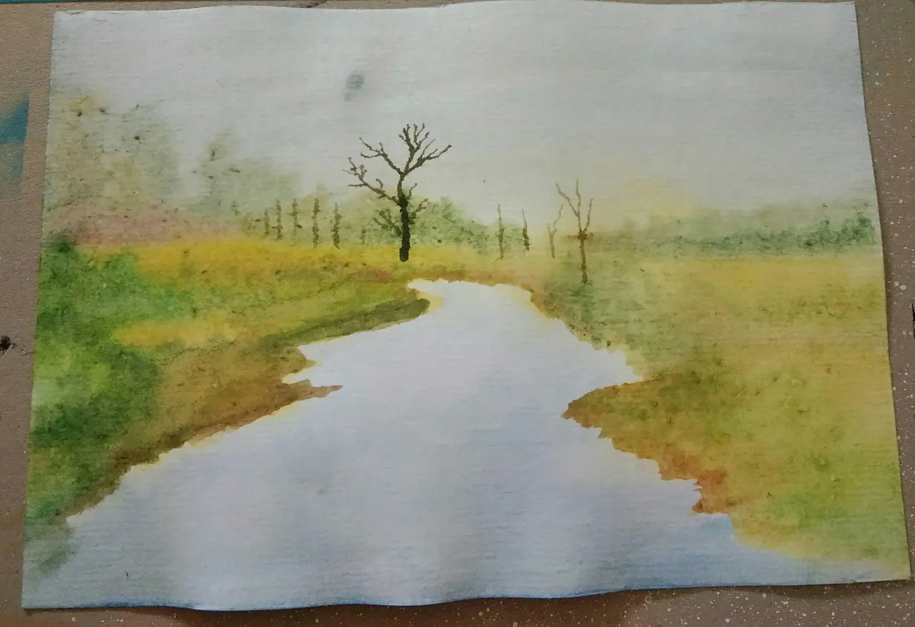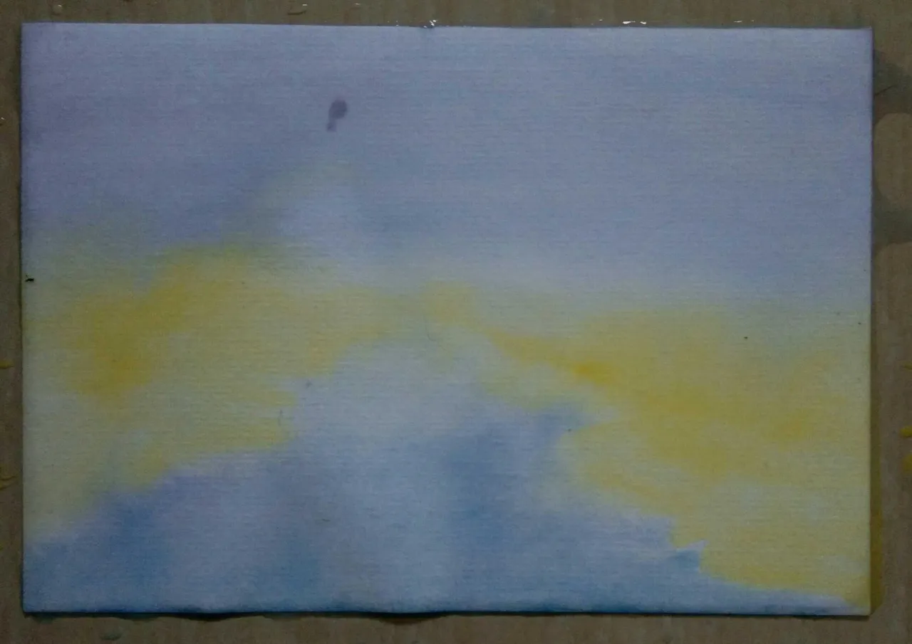 Starting by colouring the first layer, using blue and yellow, later keep adding more colour until I feel satisfied with my drawing. Well, I'm sorry for my bad explanation, I hope you will understand by looking at the photos that I attached here 😅