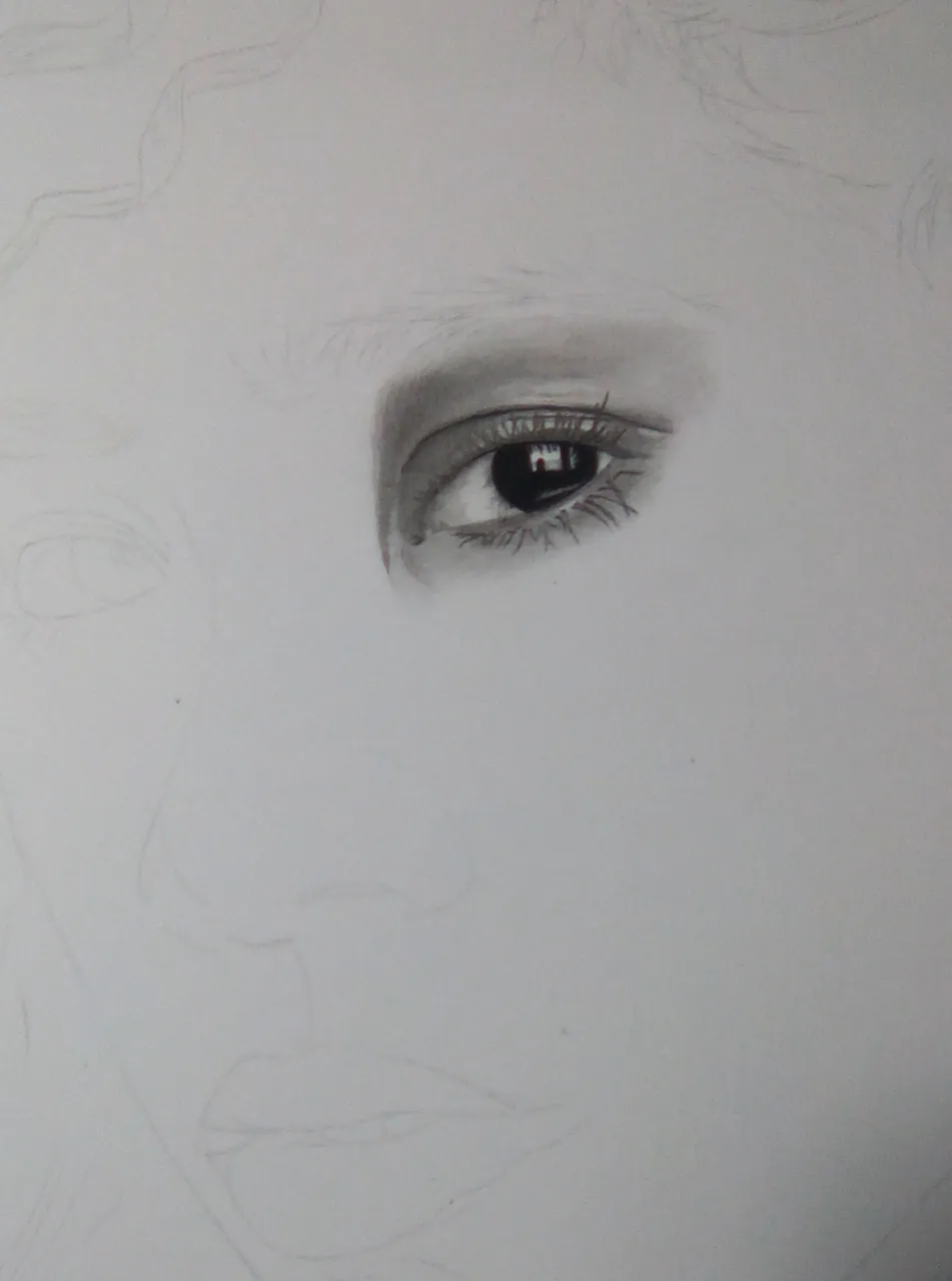with the pencil HB, 3B and 6B i made the skin tone, the shadows and the eyelashes, corresponding.