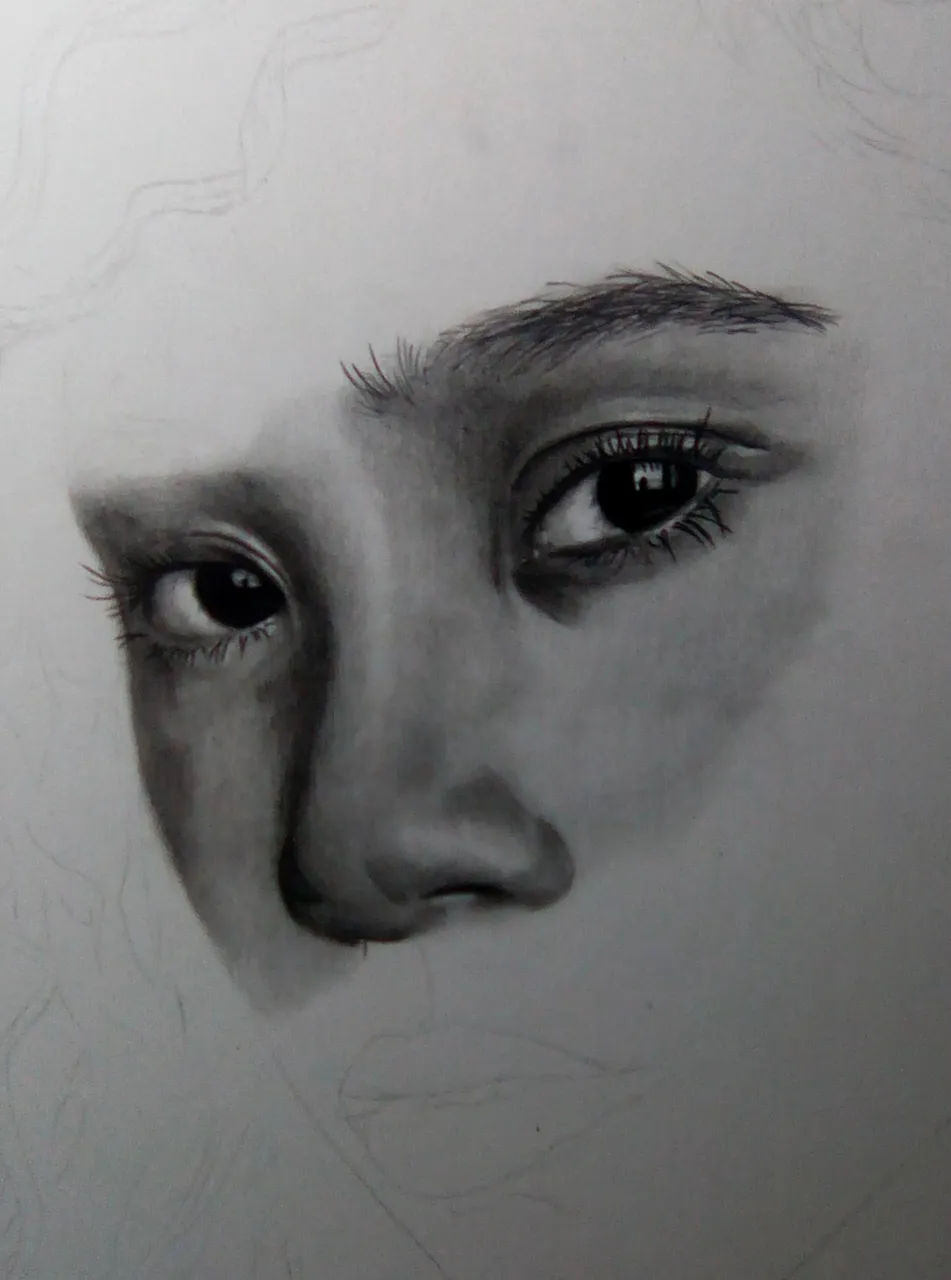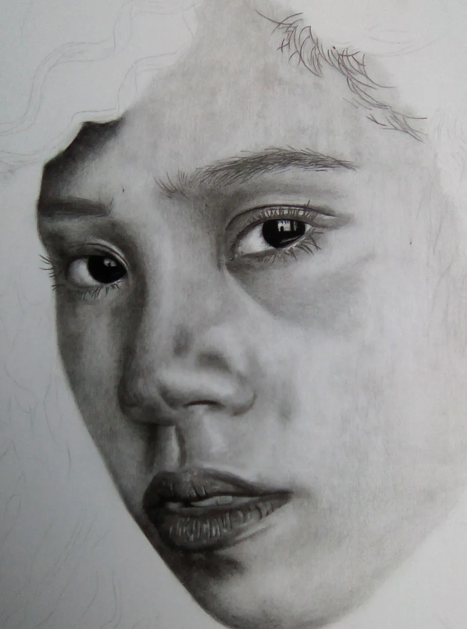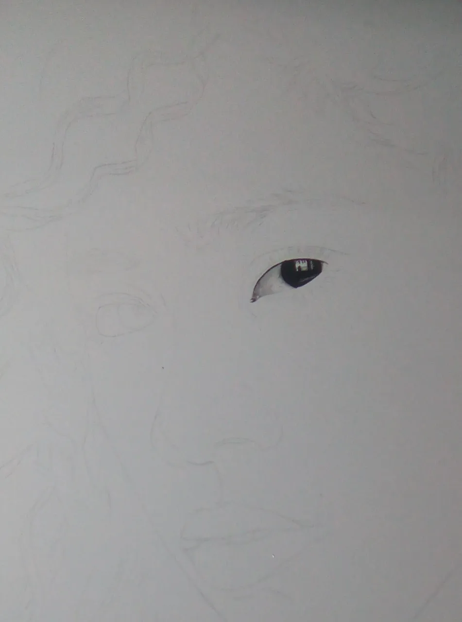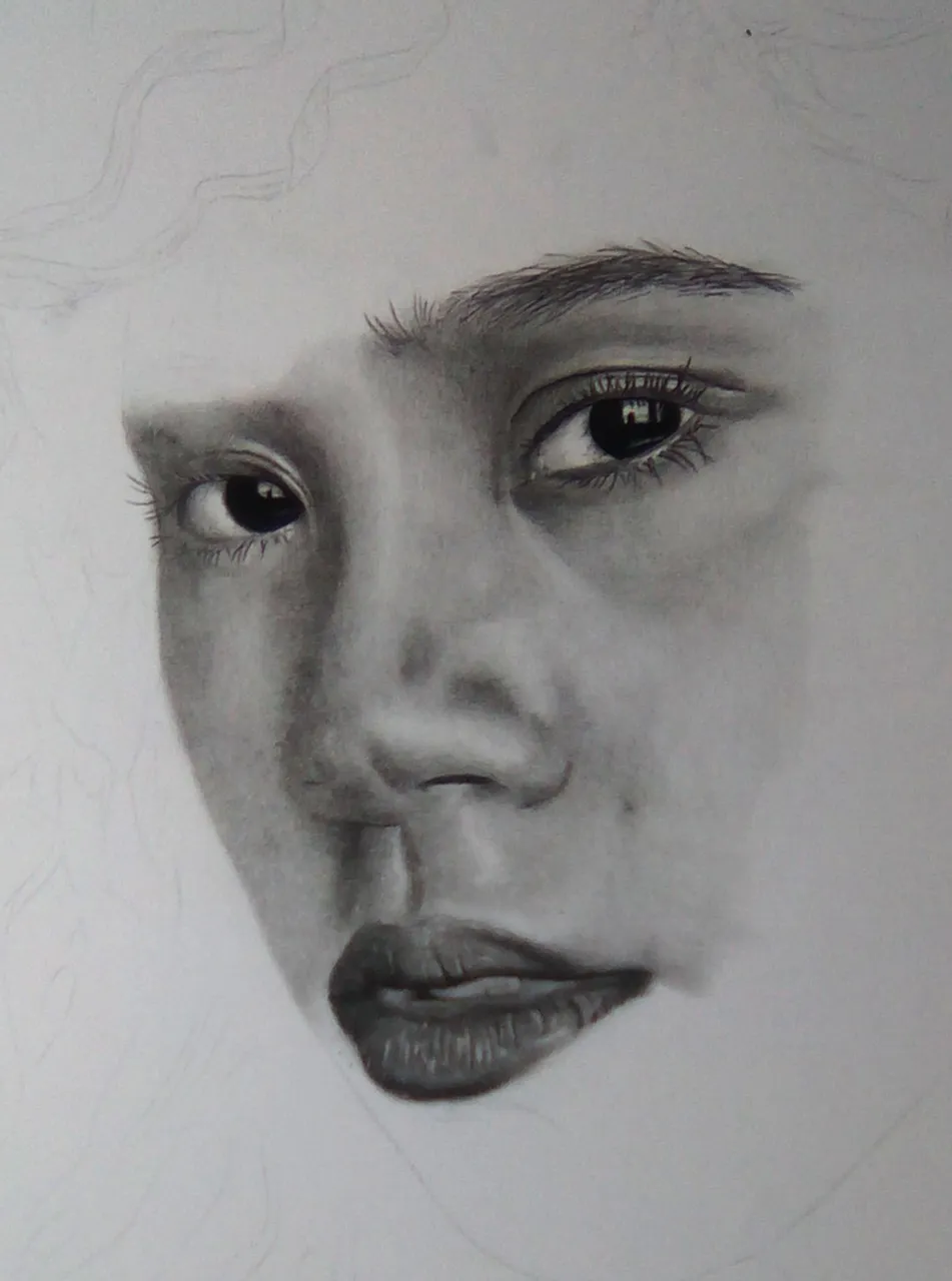 I wanted to do the whole face to correct mistakes later, i also made some hair with the pencil 6B