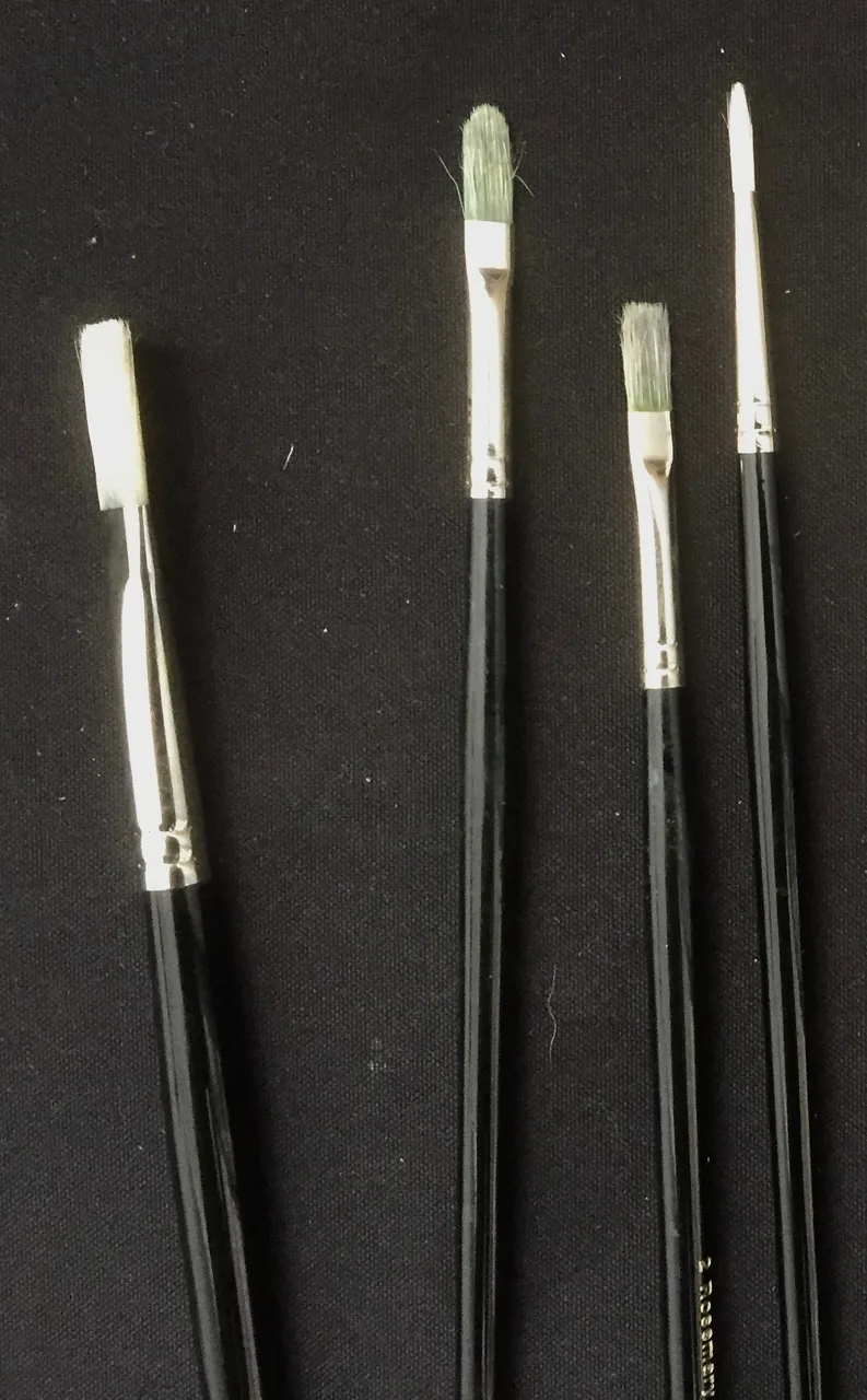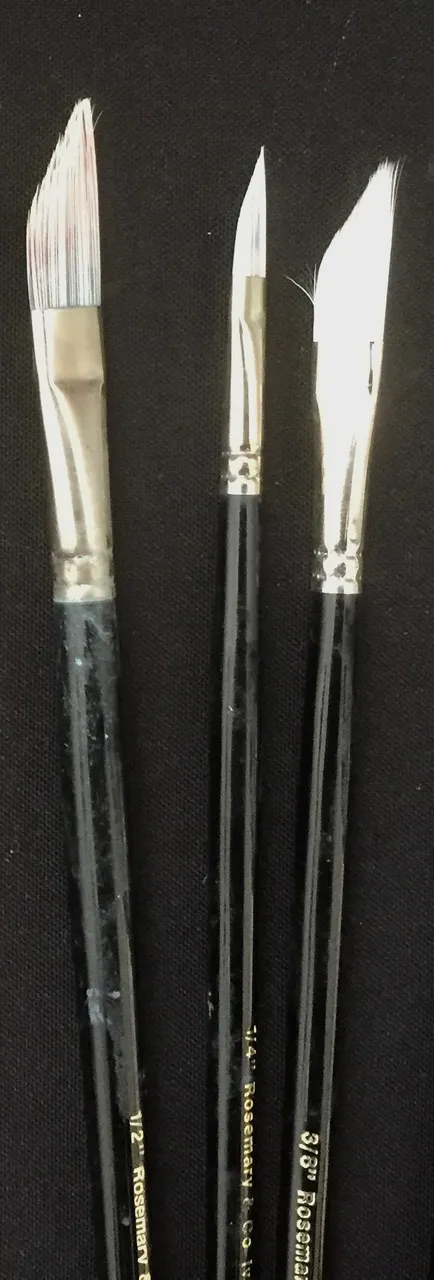 With more gestural brush strokes in mind I have opted for using mostly flat brushes, filberts and daggers.