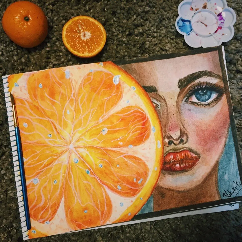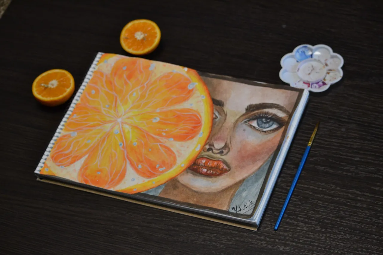 With the advent of summer, more and more like fruit. I love oranges, tangerines. I can eat them every day and I will not get tired of it. Tembolee now when I'm on a diet. At one point, I watched the movie and ate a tangerine, and inspiration came to me. Why do not I paint one of my favorite fruits.