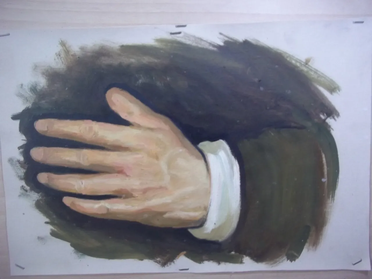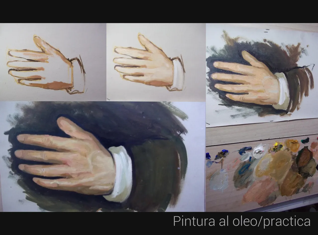 A veces la mejor forma de aprender a hacer algo es copiando a un experto, por eso hice este pequeño ejercicio en donde tomé un detalle de una pintura de Rembrandt (retrato de Johannes Wtenbogaert) y comencé a pintar, como pueden ver es el detalle de la mano, la cual fui creando a través de diversas gamas de colores cálidos que se complementan con algunos toques de azules y verdes.