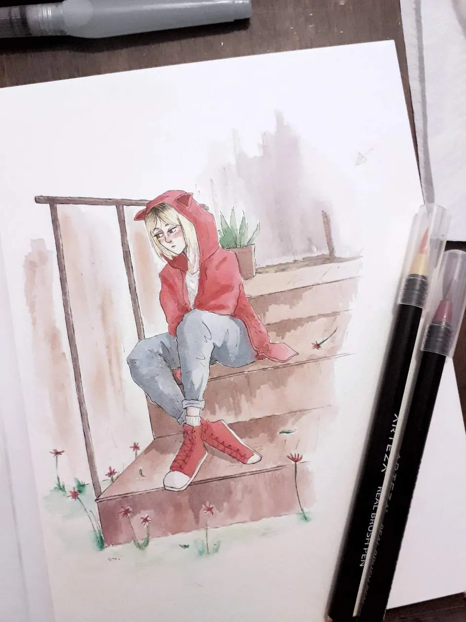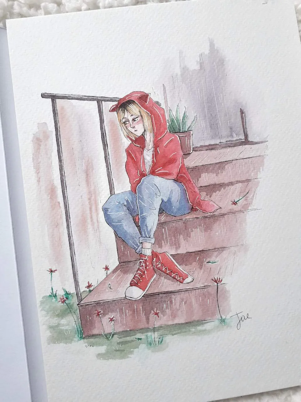 Hello! I finally got back to my watercolour supplies this morning and made this drawing of Kenma from Haikyuu.