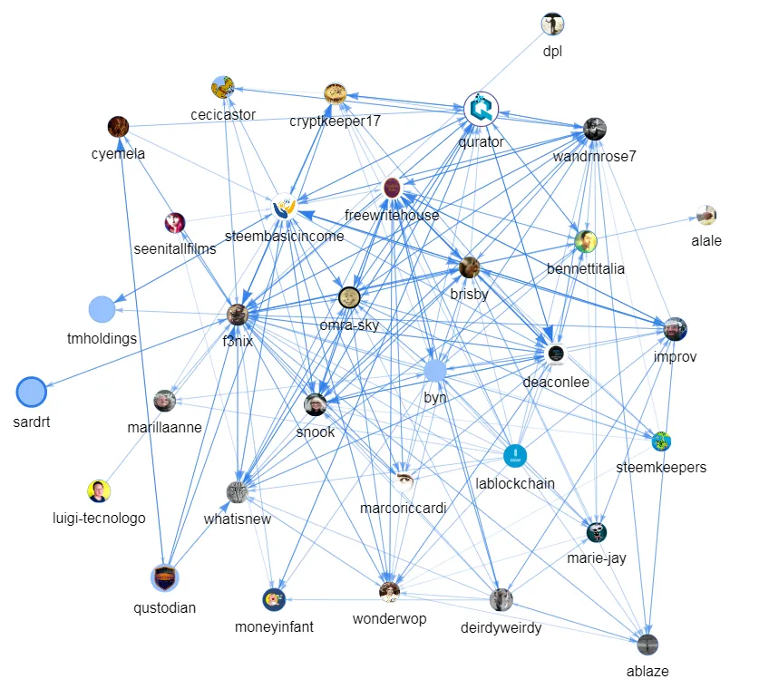 You can see that this is a very tightly woven community that uses @steembasicincome and @qurator to support the members. If all the members shown were in pool 1, instead of being spread throughout the pools, we would look even more integrated.