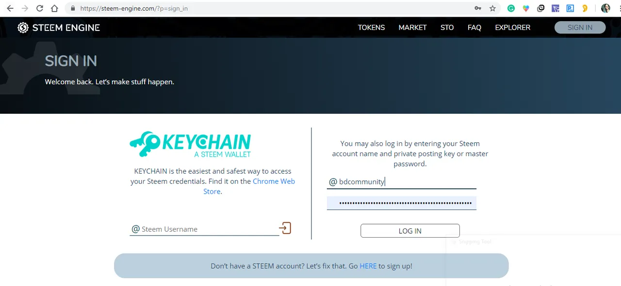 Step 2: Sign in Via your posting key. (You can log in with Keychain if you have downloaded Keychain Extension on your browser).