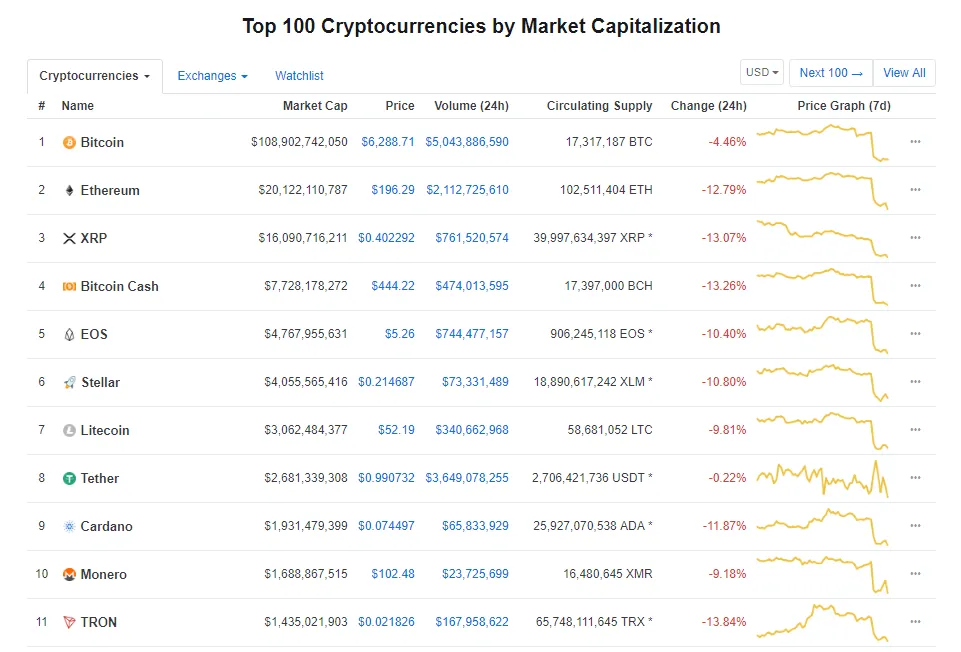 Take a look at the CMC top 10 below. All down big, all at the same time. Hmmm.