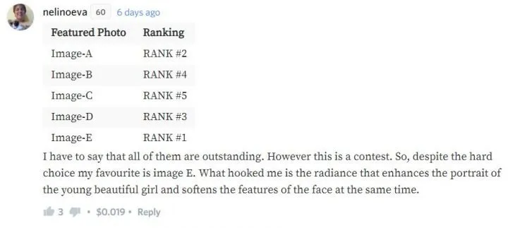 Note: We will count the numbers of upvoters to your comment and not the amount of rewards of your comment.