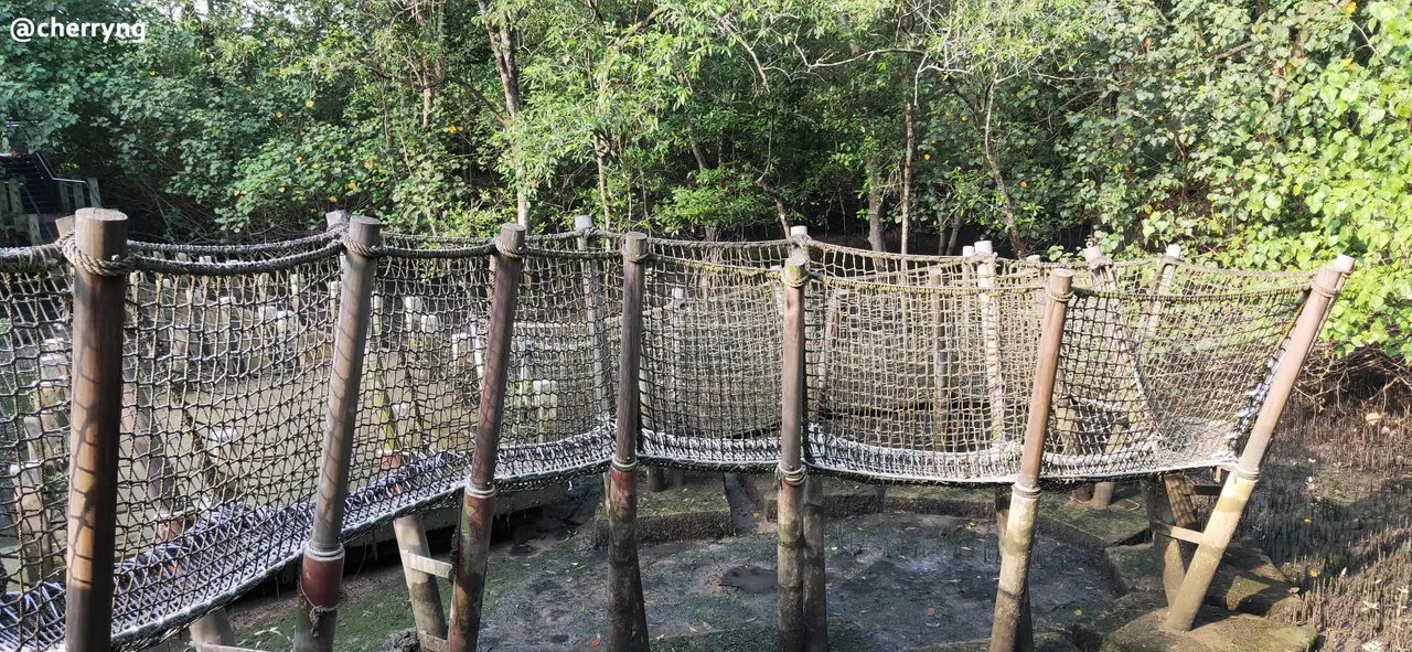 The hanging bridge in the Mangrove Boardwalk area is tilted, which seems to be exciting when walking thru on it.