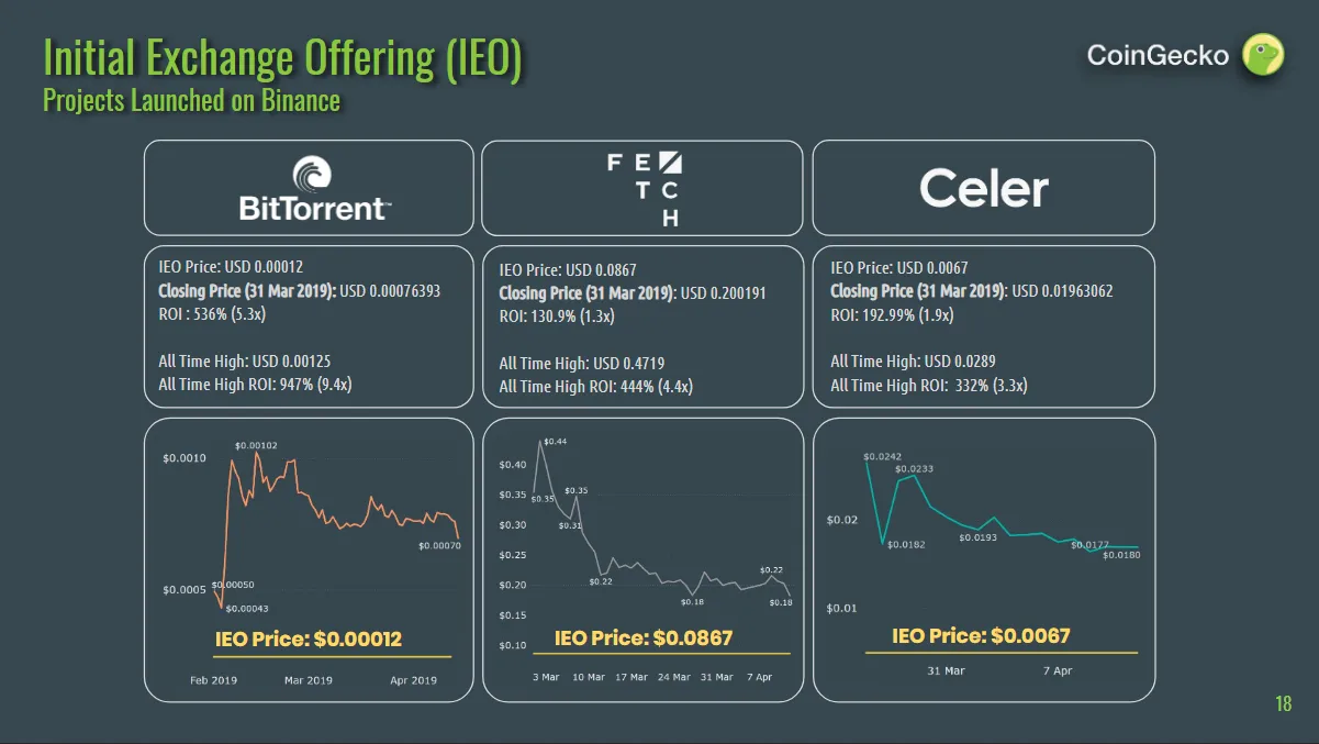 And CoinGecko even outlined the IEOs that have already taken place on the platform Binance Launchpad so far: