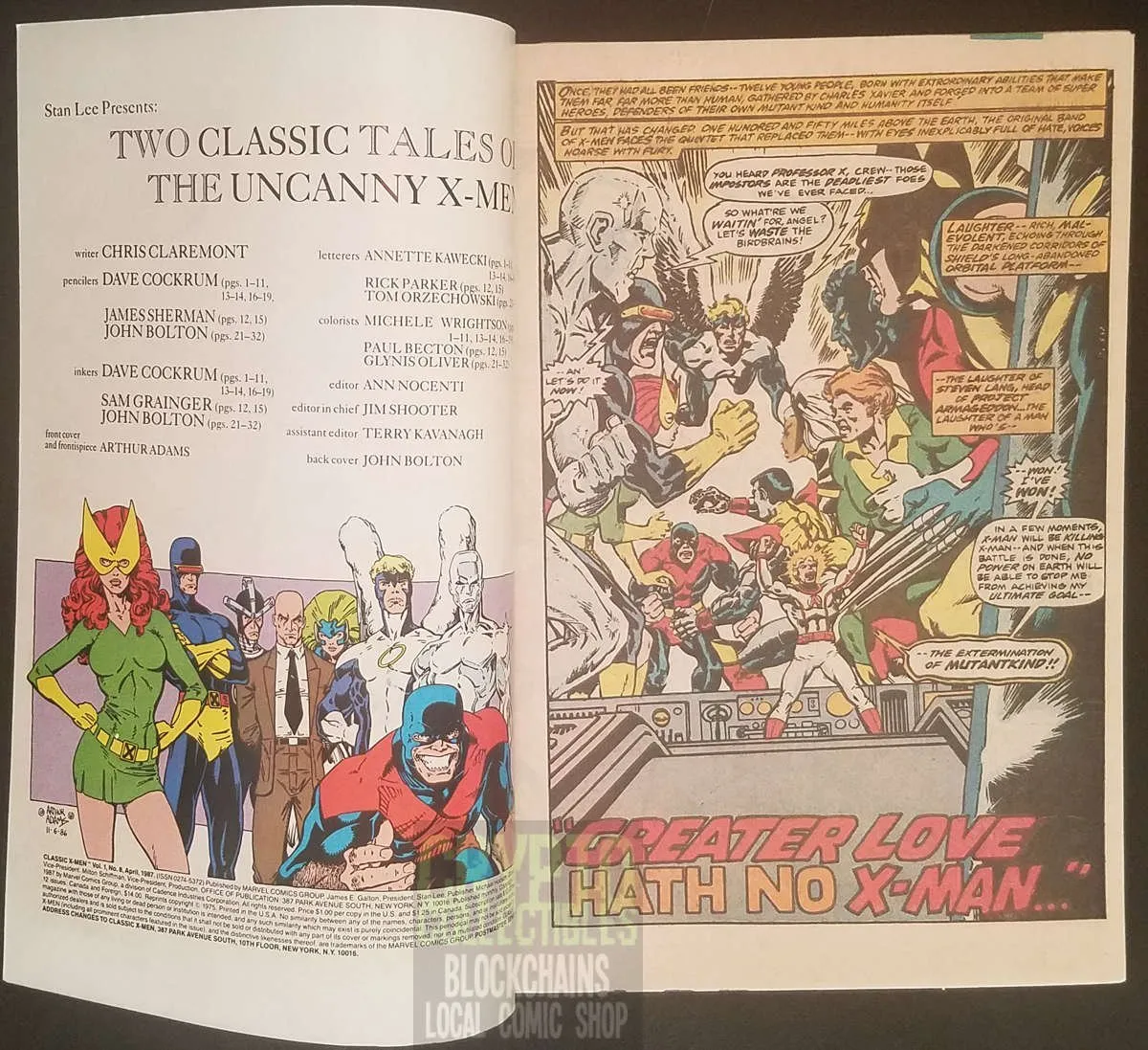 Written by Chris Claremont, drawn by John Bolton and Dave Cockrum, cover by Arthur Adams front cover, back cover by John Bolton.