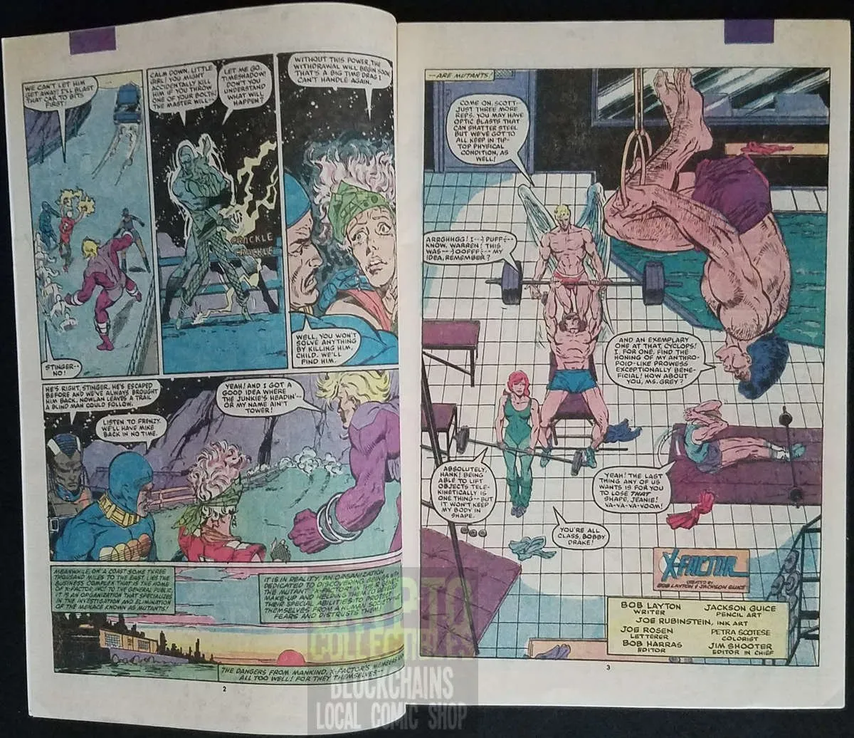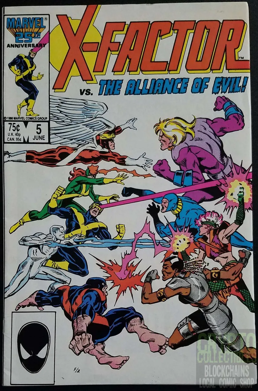 It's a classic super-hero/super-villain throw-down when X-Factor must battle the Alliance of Evil (Frenzy, Tower, Stinger, and Timeshadow) for the life of a mutant. 1st appearance of Apocalypse (shadowed cameo). Written by Bob Layton, drawn by Jackson Guice and Joe Rubinstein, cover by Ron Frenz and Joe Rubinstein.