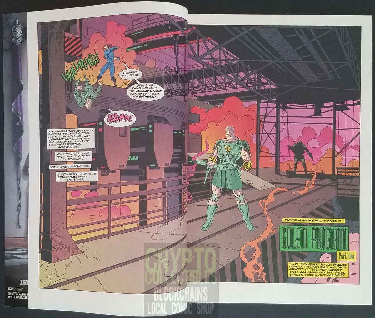 Our hero's desire to hide out on 2025 Mars fails when the local criminal organization picks a fight; Cops can't do much either, they exist on the crook's very whim. Written by Dan Abnett, drawn by Salvador Larroca, Paul Scott, and Colin Fawcett.