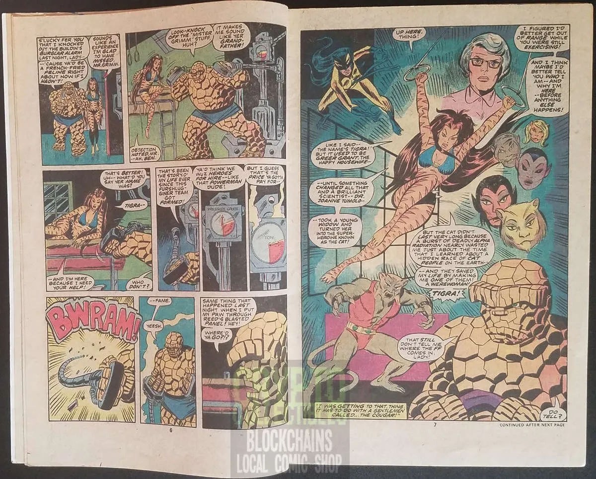 Tigra asks the Thing for help in tracking down the Cougar who is making evil use of the powerful Nega-Bands. Written by Tony Isabella and Bill Mantlo, drawn by Sal Buscema and Don Heck, cover by Jack Kirby, John Romita, and Frank Giacoia.