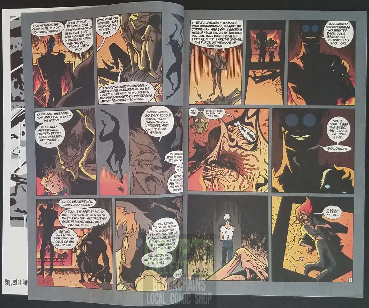 Many people perish as Nuala attempts to save the Sandman's life. Written by Neil Gaiman, drawn by Marc Hempel and Richard Case, cover by Dave McKean.