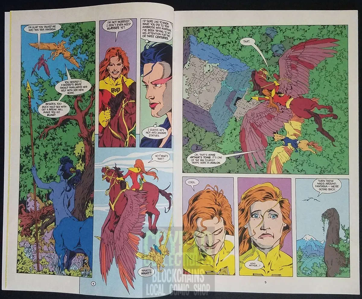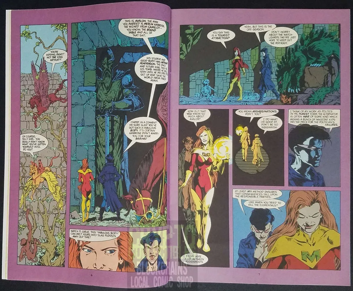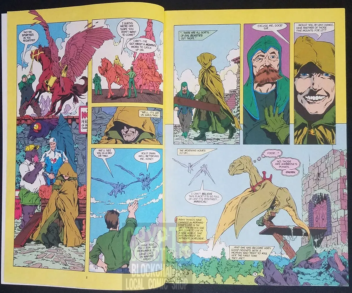 Newly married to the wizard Ambrose (who just happens to be Merlin Ambrose, mage in the court of King Arthur), Morningstar sets off to explore her new home, Avalon. Written and drawn by Bill Willingham.