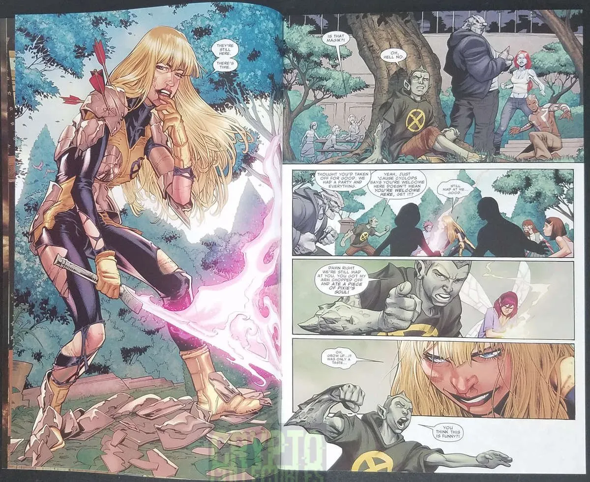 Cannonball, Dani Moonstar, Karma, Sunspot, Magma and Magik have been gathered once more, but can they stand against one of the most powerful X-Villains of all time? Written by Zeb Wells, drawn by Diogenes Neves, cover by Alex Ross.