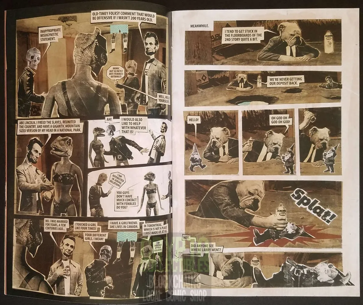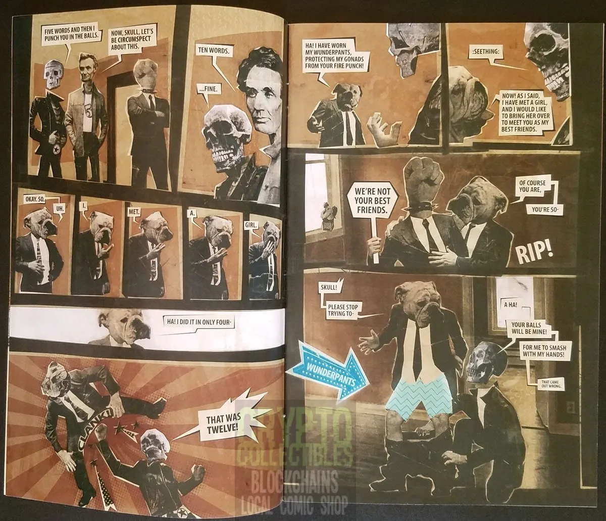 Dog, Skull, Fist, and Abe Lincoln live in a house, beat the shit out of each other, and frequently humiliate themselves. There is bleeding and sadness; Morrissey would likely approve. Written by Joshua Hale Fialkov, drawn by Kody Chamberlain.