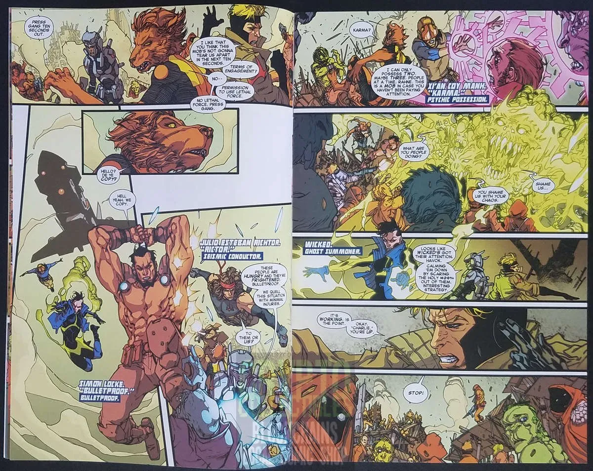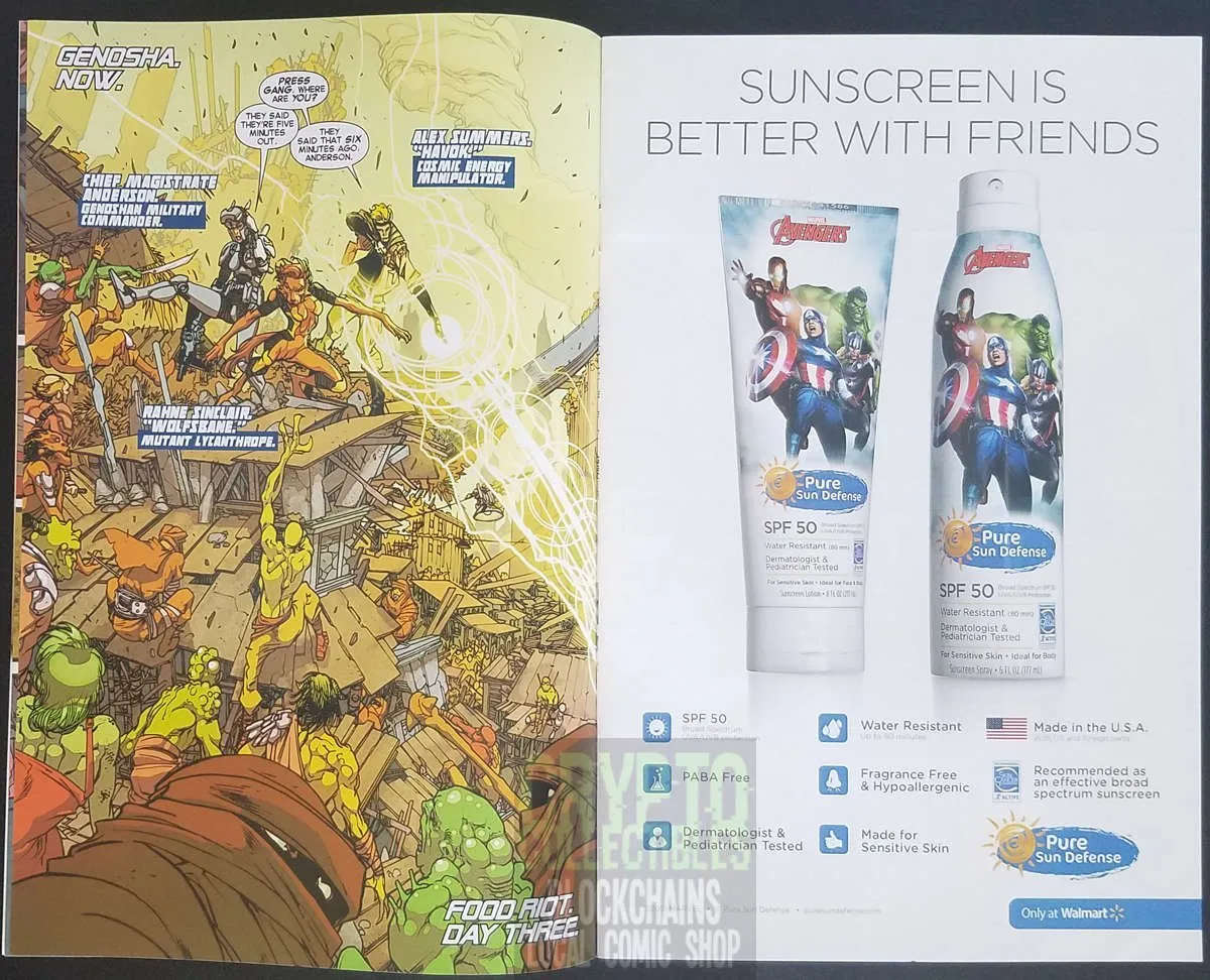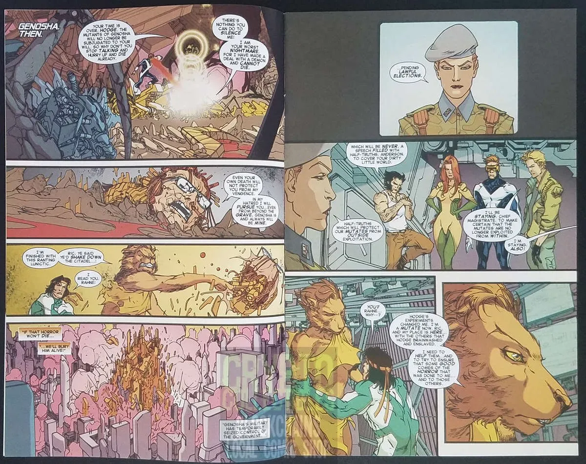 Ten years since the fall of Cameron Hodge and his fascist regime. Ten years that Havok and Wolfsbane have labored to rebuild Genosha. But their work may be for naught, as a plague has spread across their nation, infecting mutants and threatening their race with extinction. Written by Marc Guggenheim, drawn by Carmine Giandomenico, cover by David Nakayama.