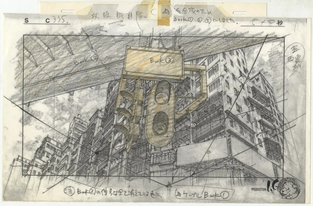 Then there is of course real perspective, a time consuming and meticulous task that I mostly avoid :) Below you can see a drawing used for the background of the fantastic 1995 anime Ghost in the Shell.