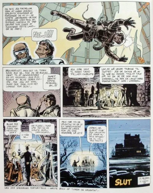 The last example is from Pierre Christin and Jean-Claude Mézières' Valérian and Laureline. It is from the album named, The Ghosts of Inverloch, which was part of a four album long arch that was a major turning point in the series. As in the Incal series Mézières and Christin was working on the comics as albums and they were masters of telling a original and beautiful story on 48 pages. But in these four albums they created a very long and complex story full of mysterious happenings that almost fell over each other. The Ghosts of Inverloch, which is the third album of the four, barely has space to end so much do the two creators have to tell.