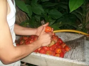 En primero lugar comenzaremos a seleccionar los tomates que son aptos para el consumo, no en condiciones contaminadas o con hongos. Una manera de determinar que están buenos es que no tengan presencias de mal olor, muy muy mal aspecto; de esta manera vamos seleccionando uno a uno.