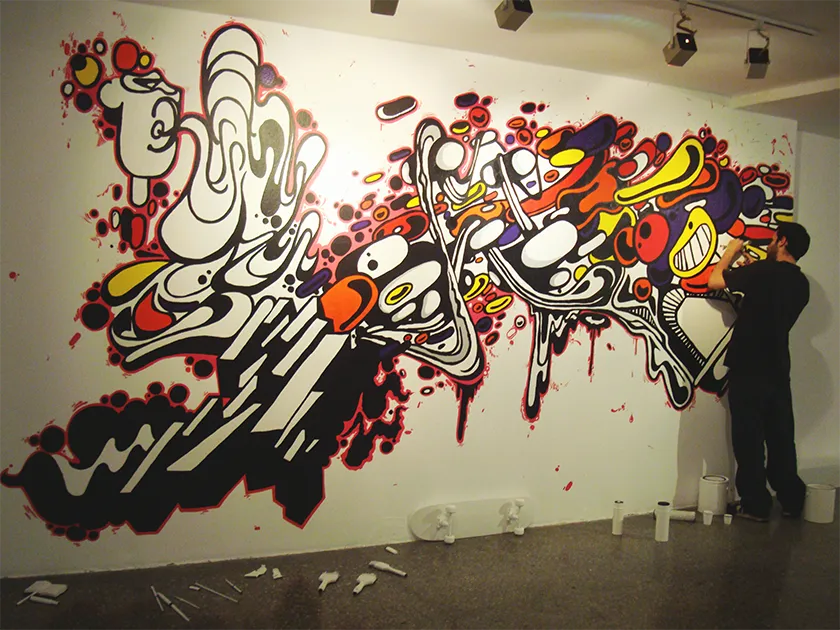 An absolute honor making this one for an #exhibition during the International Art & Antiques Fair at the historic Lía Bermúdez Art Center in Venezuela. Here working on the final details of this #mural that took around 6 days.